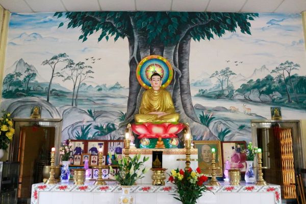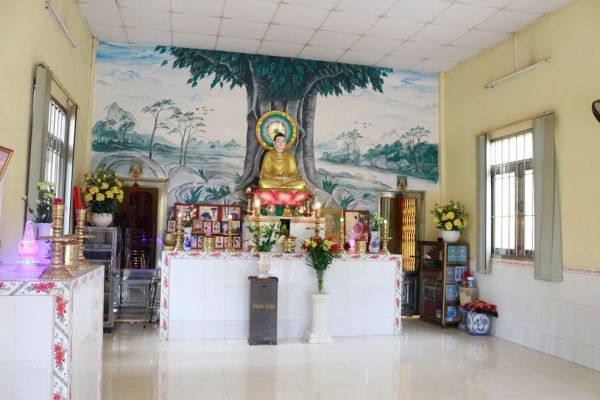 Chánh điện có diện tích khoảng 50 m2. Xung quanh là nhà của con cháu Cố ĐĐ Tấn Tâm. Cho nên, ngôi chùa trước kia giờ không còn là ngôi chùa chung cho bá tánh mà chỉ là ngôi từ đường cha truyền con nối.